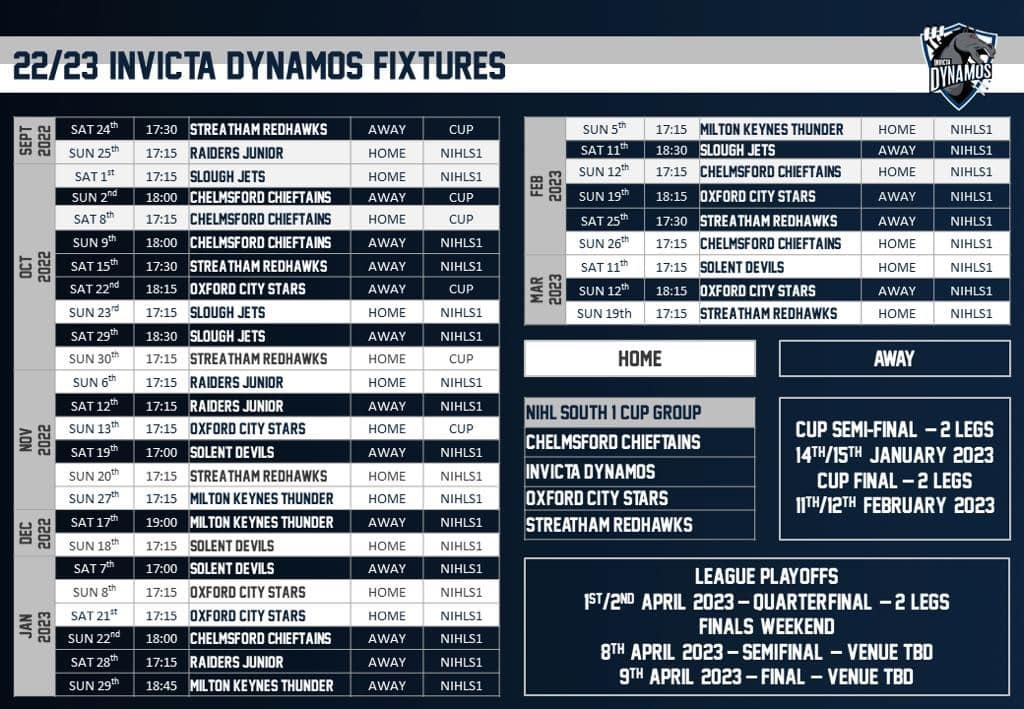 NIHL SOUTH DIVISION 1 (BRITTON) 2022/23 FIXTURES