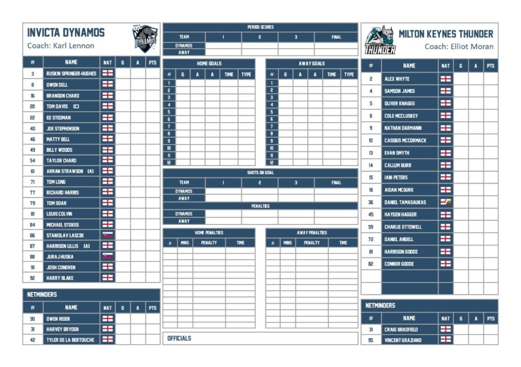 TEAM LIST – INVICTA DYNAMOS V MILTON KEYNES THUNDER 05.02.23