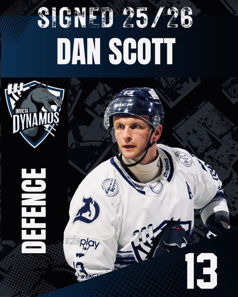 The Invicta Dynamos are thrilled to announce that defenceman Dan Scott will be staying with the club for the 2025/26 campaign! Now entering his third consecutive season back at Invicta, Scott’s wealth of experience, skill, and leadership continue to be essential to the team’s long-term ambitions.