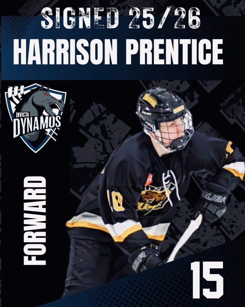 The Invicta Dynamos are thrilled to announce the return of forward Harrison Prentice for the 2025/26 season! After two years of honing his craft overseas, Harrison is back where it all began – ready to make his mark in senior hockey with the Mos!